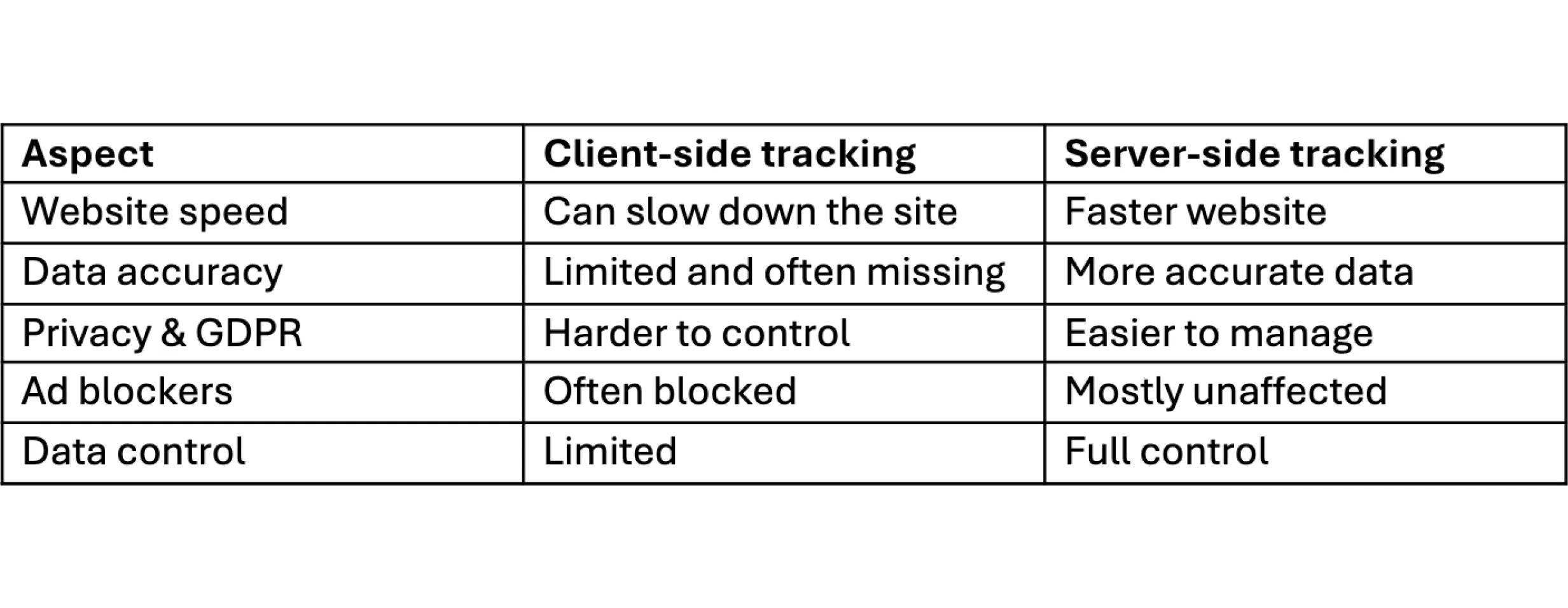 Moving tracking to the server improves page load speeds and gives you full control over data ownership and security.